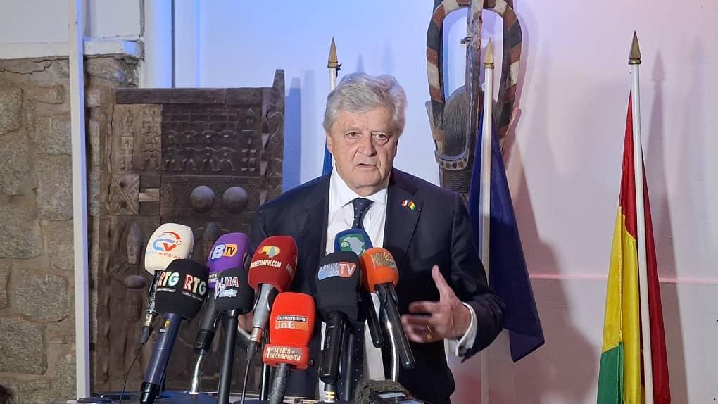 Au terme de cette visite, Nicolas FORISSIER, a insisté sur la solidité des relations entre les deux pays et sur la nécessité de consolider un partenariat économique durable, axé sur les intérêts mutuels. « Au terme de cette visite bilatérale que j’ai effectuée, à la demande du Président de la République Française Emmanuel Macron, après qu’il en ait discuté avec le Président Doumbouya de la République de Guinée, l’idée était que cette visite sur le plan économique permette d’approfondir, de renforcer, de mieux structurer encore notre coopération franco-guinéenne, guinéo-française, qui est excellente, qui se base bien, qui est très solide, et le message principal de ma présence hier soir et aujourd’hui ici à Conakry, c’est vraiment que nous sommes au travail pour renforcer ce partenariat gagnant-gagnant entre la Guinée et la France »